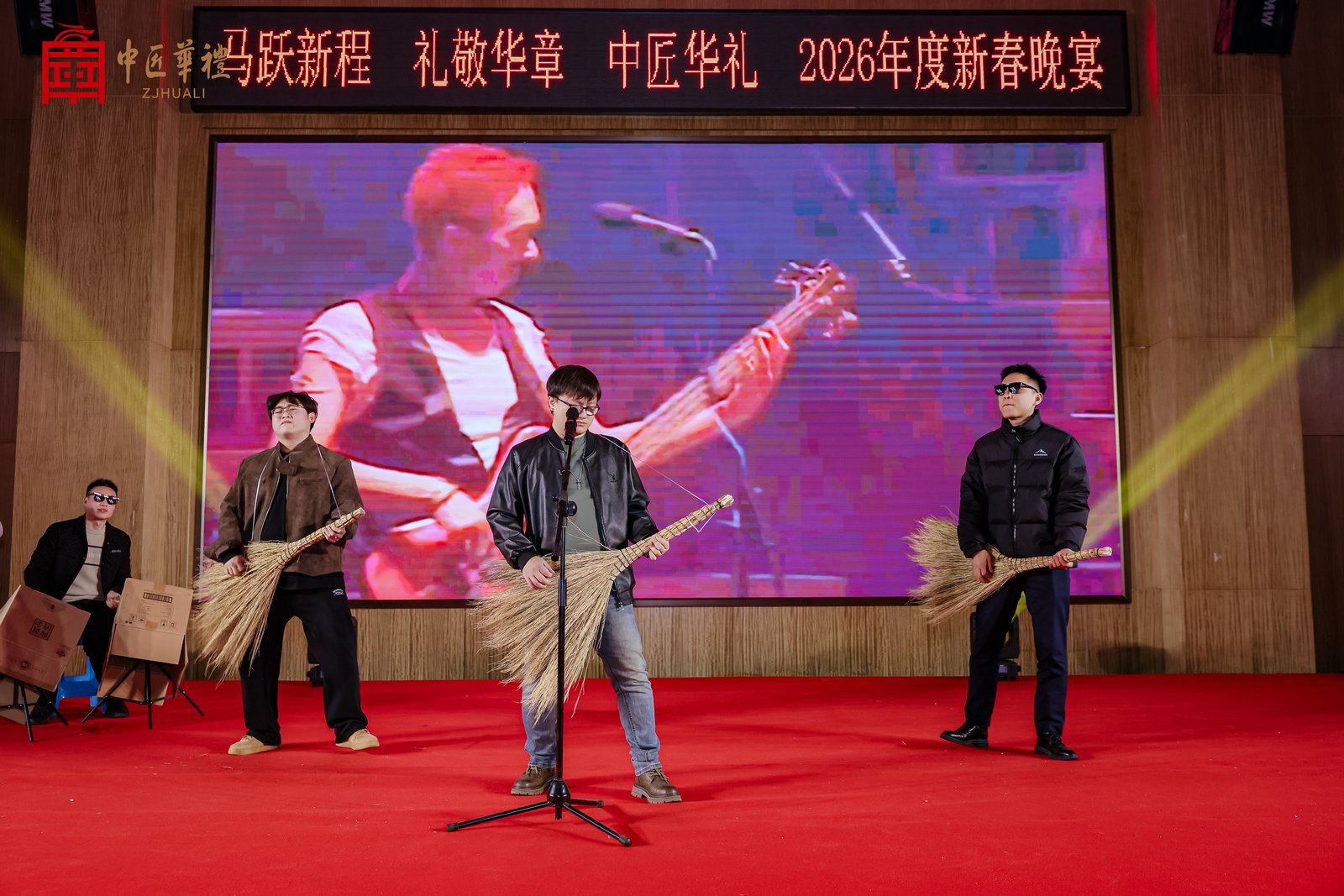 年会的舞台属于每一位中匠华礼人。伴随着激昂的鼓点与跃动的光影,企划中心副总经理马强以一曲张艺兴的《马》震撼开场——舞步铿锵如骏马踏尘,歌声昂扬似征途号角,瞬间点燃全场热情。随后,《十七岁》、《印度神曲》、《草台班子》、《夜上海》等节目轮番登场,朗诵、小品、模仿秀等多形式演绎精彩纷呈,生动展现了中匠华礼人多才多艺、活力满格的别样风采。