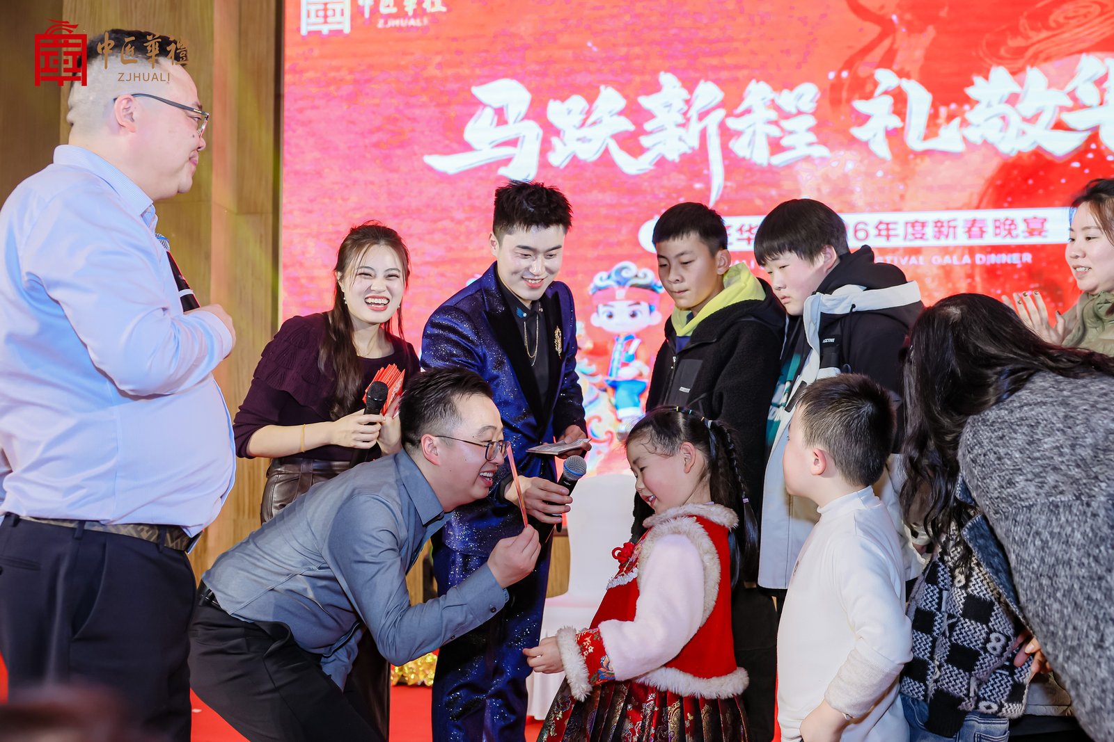 晚宴的温馨时刻,更属于现场的小朋友们。马董为每一位孩子送上新年红包,宝贝们用稚嫩的声音说出 “龙马精神”“万事如意”“马到成功” 的祝福,一张张笑脸点亮全场,这是中匠华礼 “以情聚心、以家筑梦” 的最好诠释,为这场盛宴增添了最温柔的色彩。