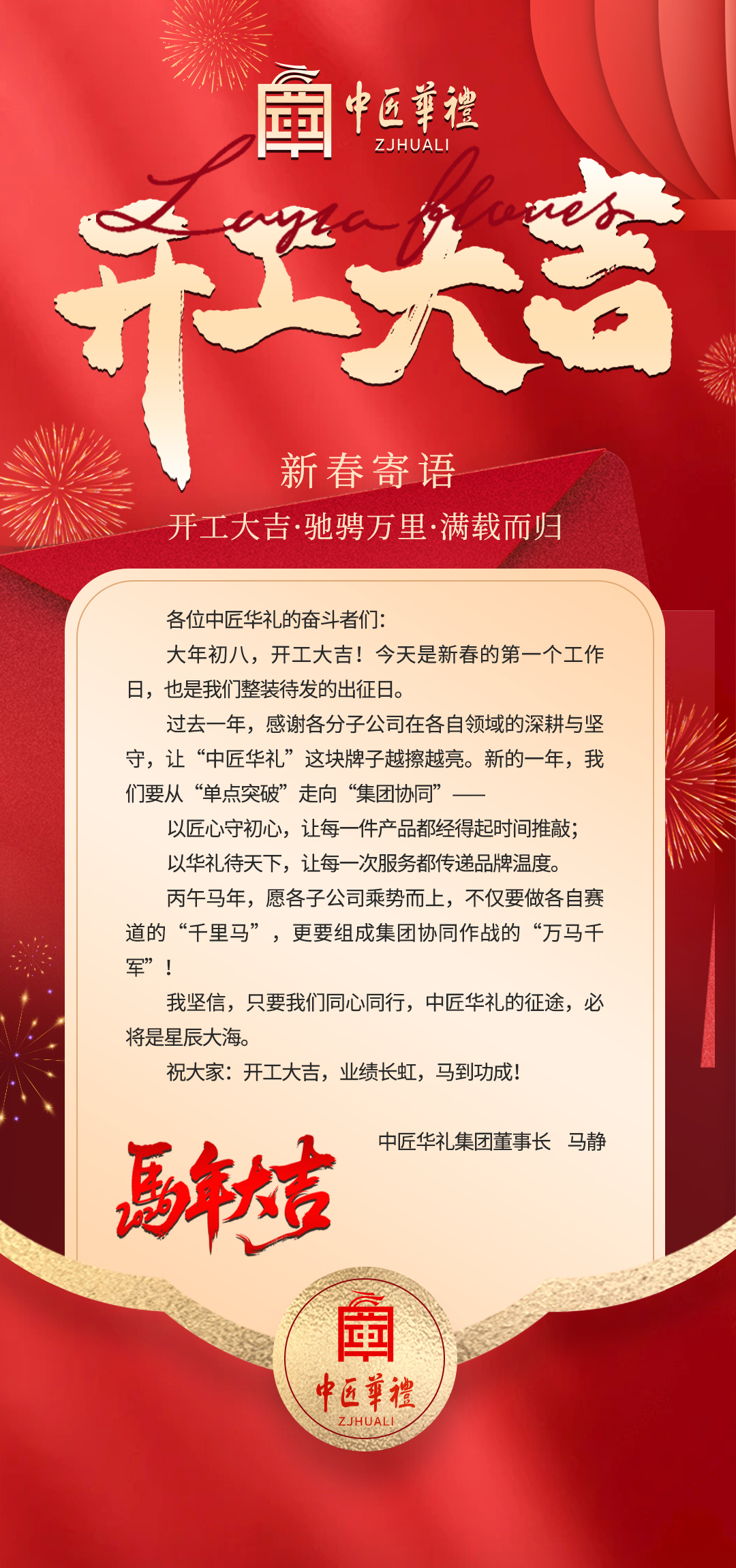 前路有光,身旁有伴; 心中有梦,脚下有力。 2026,中匠华礼,开工大吉!让我们同心同行,马力全开,共赴中匠华礼的星辰大海!