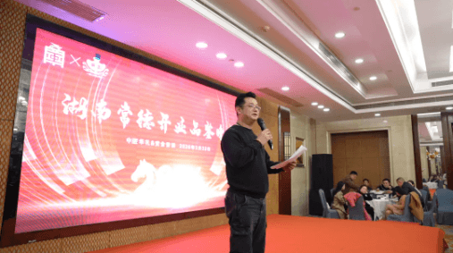 随后,湖南常德总代理商谢世忠先生登台致辞。他表达了对品牌方支持的感谢,对常德市场的信心,以及对未来发展的坚定信念。他表示,将携手总部,深耕本地市场,让更多常德消费者喝上正宗、高性价比的黄金酱酒。