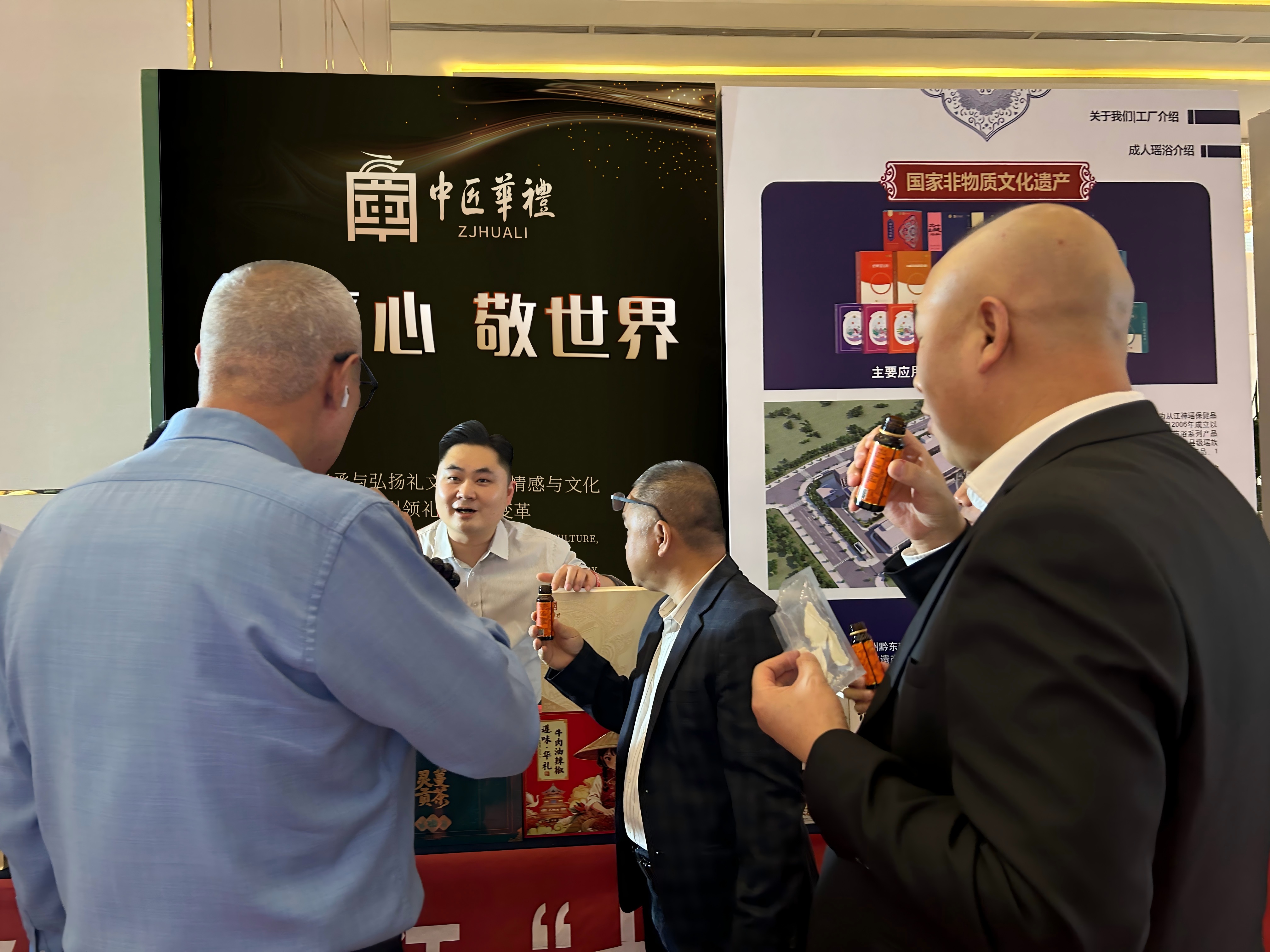 在推介会展区,中匠华礼携旗下《御养草本》、《灵蔓贡茶》、《寐麻》、《维御天珍》、《遵味华礼》五款具有贵州地域特色的产品精彩亮相,吸引众多与会嘉宾驻足品鉴。